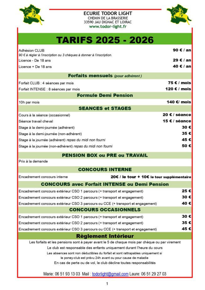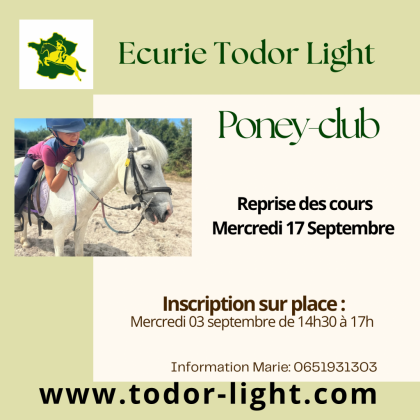 Ouvert toute l'année, les Ecuries Todor Light vous propose des cours les mercredi et samedi pour les cours collectifs et en semaine pour les cours particuliers.